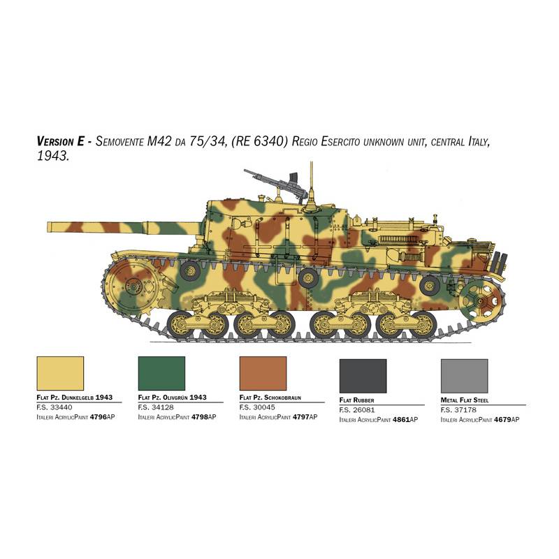 Face à l’évolution du conflit et à l’apparition de blindages plus résistants, l’armée italienne demanda une version plus puissante. Le canon 75/34, conçu à l’origine pour la lutte antichar, fut alors monté sur la nouvelle caisse M42, donnant naissance au Semovente M42 da 75/34. Les premiers exemplaires furent livrés au printemps 1943. Plus performant, plus précis et doté d’une meilleure capacité de pénétration, il démontra rapidement une efficacité notable sur le terrain. Après l’armistice de septembre 1943, de nombreux M42 da 75/34 furent capturés ou récupérés par la Wehrmacht, qui les utilisa au sein de ses unités antichars, prouvant la valeur de cet engin même dans les derniers mois de la guerre.