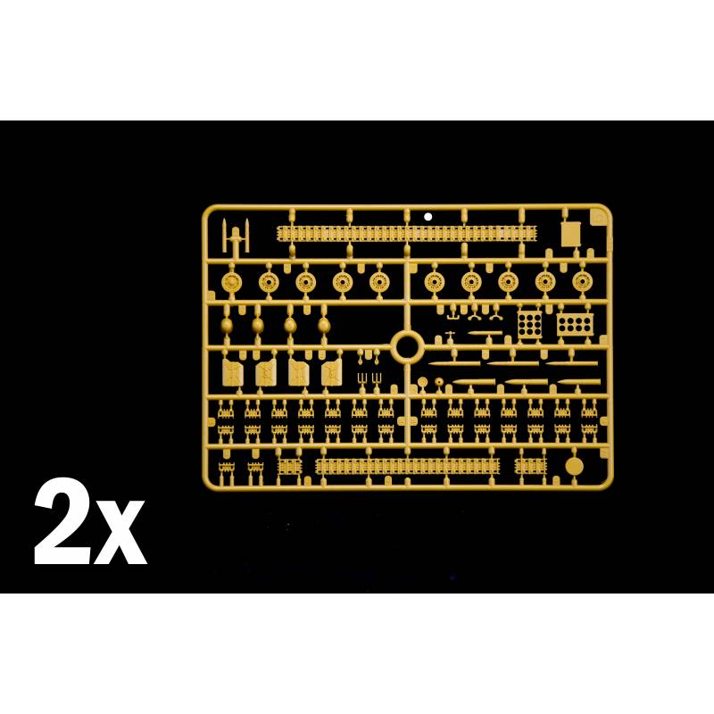 Italeri propose ici une édition améliorée, extrêmement complète et précise. Le kit inclut un canon métallique tourné, une planche de photodécoupe, ainsi qu’un choix entre chenilles segmentées ou chenilles souples collables. Les détails caractéristiques du Semovente M42, notamment la casemate basse et anguleuse, la suspension italienne typique et les équipements extérieurs, sont fidèlement rendus. Six marquages différents sont proposés, couvrant aussi bien les derniers blindés italiens de 1943 que ceux réutilisés par les forces allemandes. Le modèle terminé atteint 14,4 cm, avec un niveau de difficulté élevé (Skill 5), adapté aux maquettistes expérimentés.