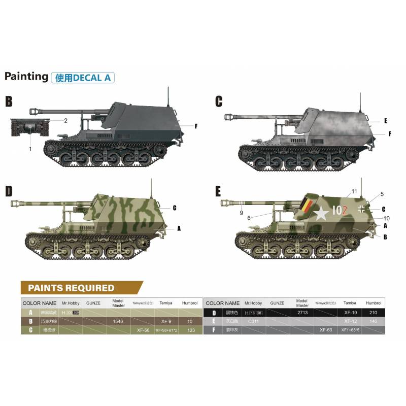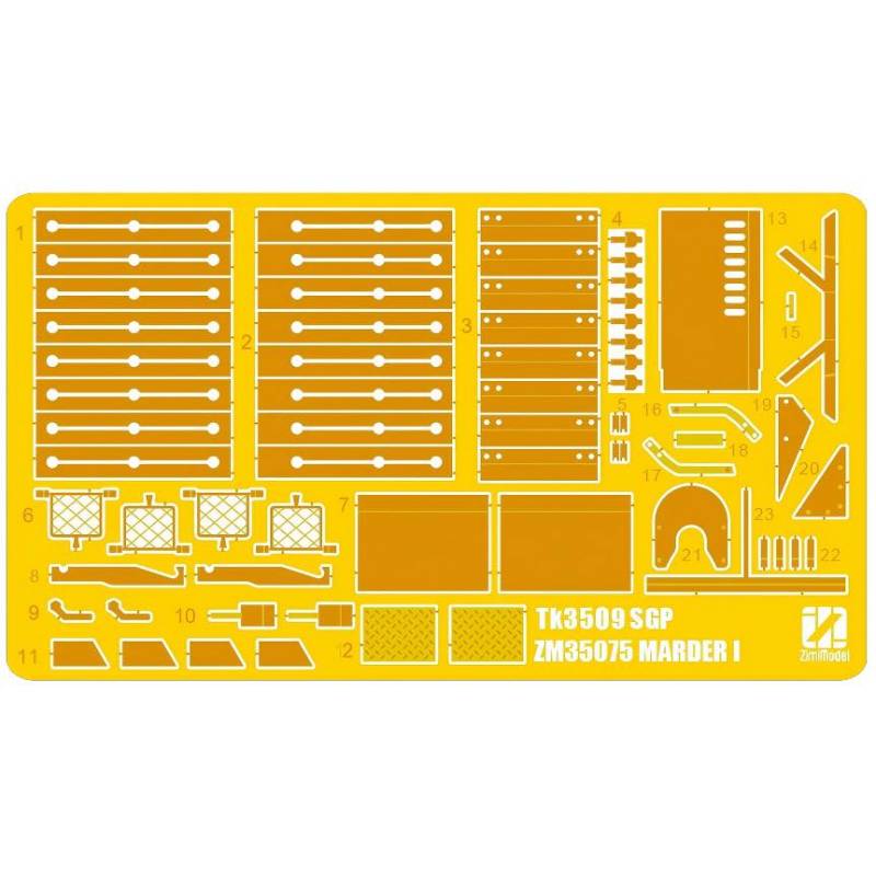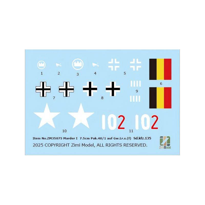 Le kit ZIMI Model 35075 au 1:35 met en scène ce chasseur de chars et ajoute une dimension particulièrement intéressante avec le wagon plat lourd SSy45 (Schwerer Plattformwagen) “50 t”, typique des transports ferroviaires allemands de matériels lourds. Cette combinaison ouvre des possibilités de diorama très fortes : véhicule en transit vers le front, convoi en gare de triage, chargement/déchargement, ou préparation avant transfert vers une zone de combat. À cette échelle, l’ensemble permet de détailler la structure ouverte du Marder (poste de tir, bouclier, munitions, patine de combat) tout en travaillant le vieillissement d’un wagon soumis aux contraintes de manutention, graisse, poussière, traces de rouille et marquages ferroviaires.