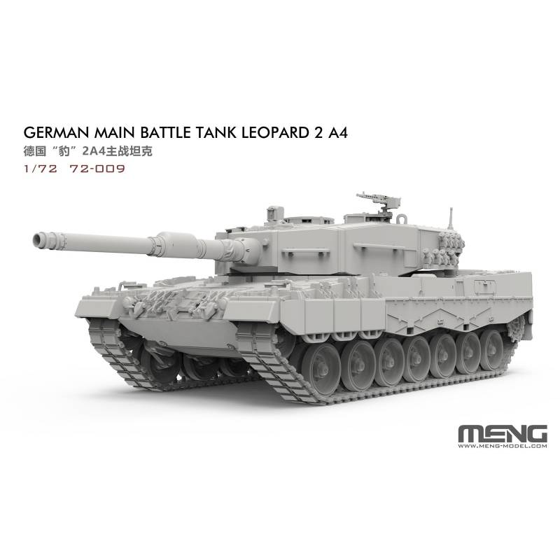 La maquette MENG Model 72-009 au 1:72 permet de retrouver cette silhouette tendue et fonctionnelle dans un format compact, idéal pour les vitrines et les collections “petites échelles”. À 1:72, l’intérêt modéliste réside dans la finesse de gravure et la propreté des formes : glacis avant, flancs de caisse, volumes de tourelle et détails de surface ressortent très bien avec une peinture précise et une patine maîtrisée. Le Leopard 2A4 se prête particulièrement à des finitions variées : char de la Bundeswehr en livrée tricolore OTAN, véhicules export en schémas nationaux plus contrastés, ou approche “sortie d’exercice” avec poussières, traces de boue sèche et usure contrôlée sur les zones de marche et les arêtes.