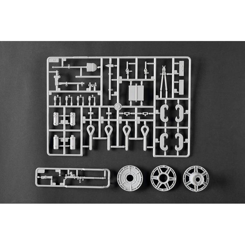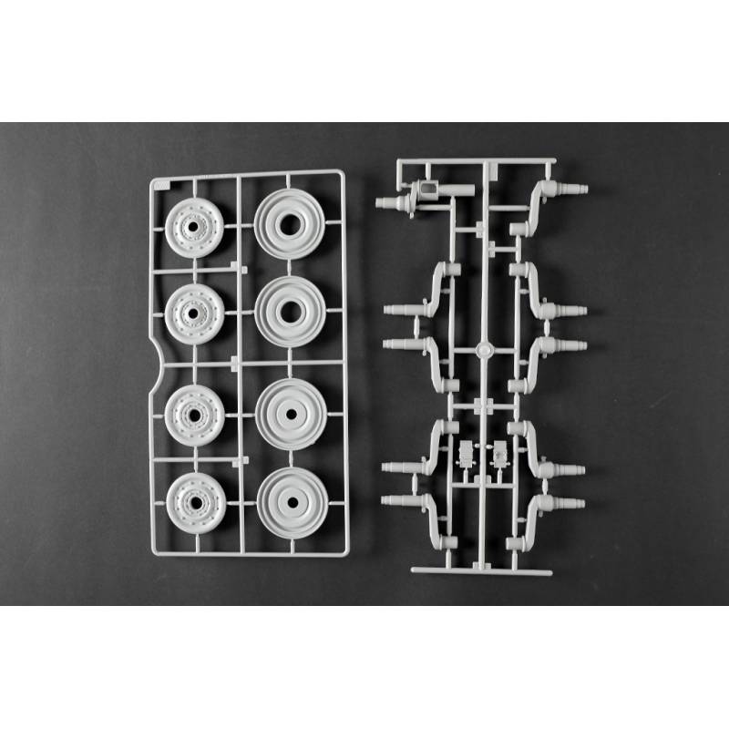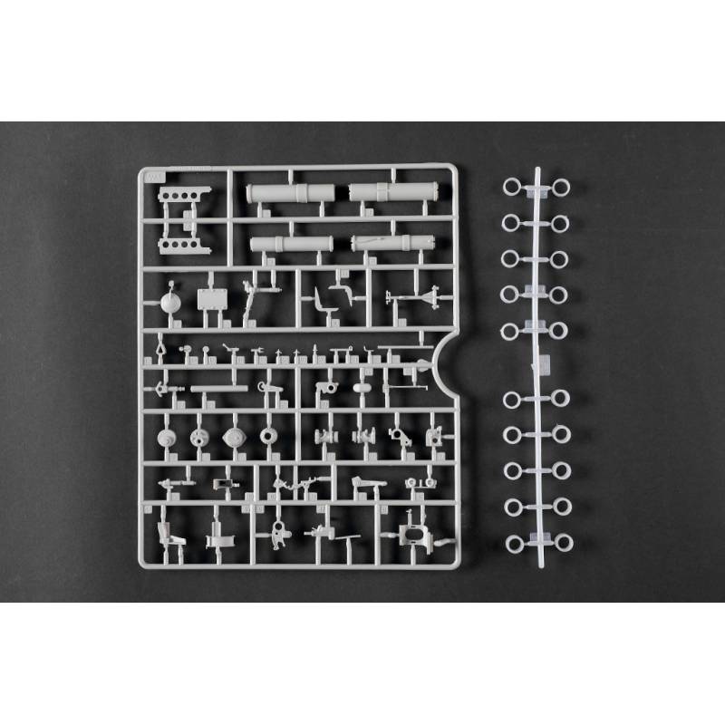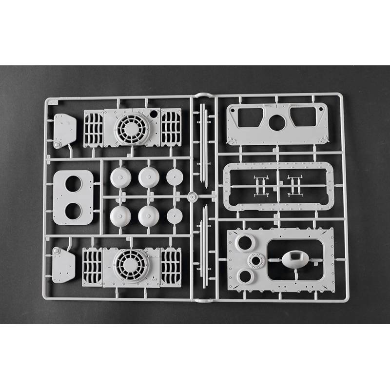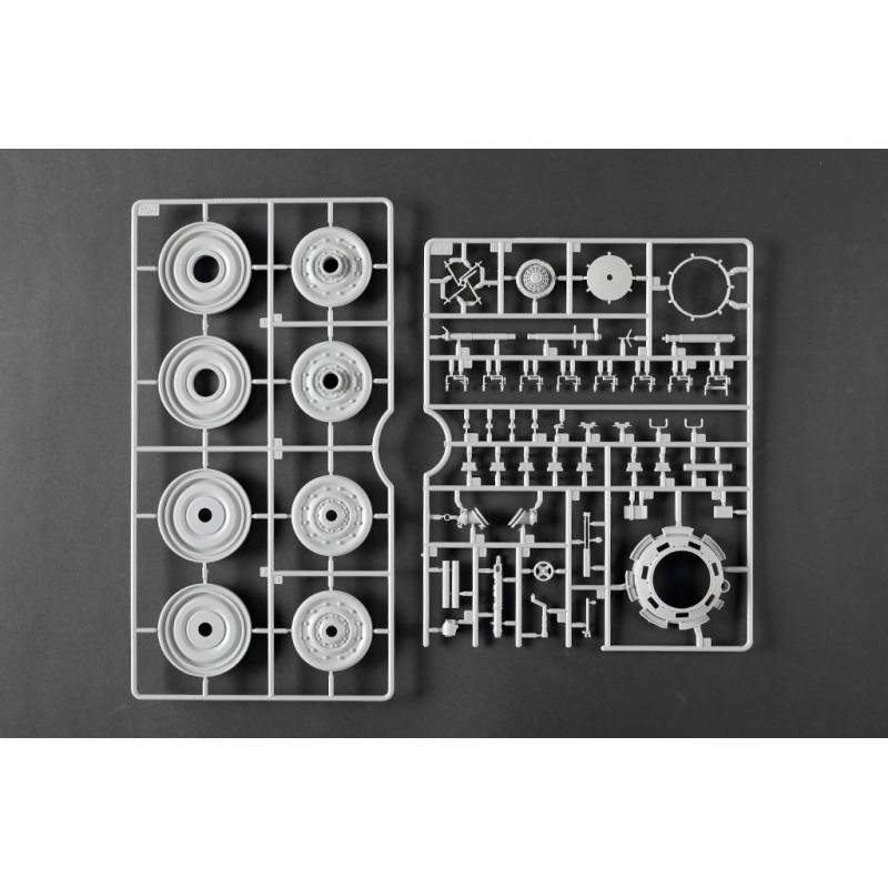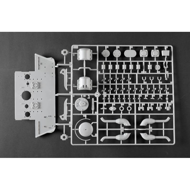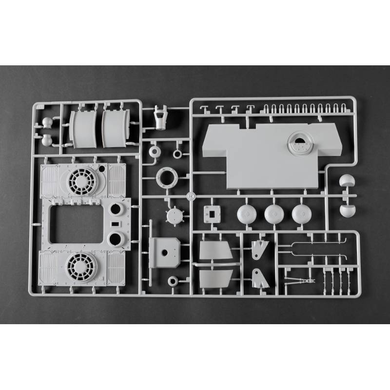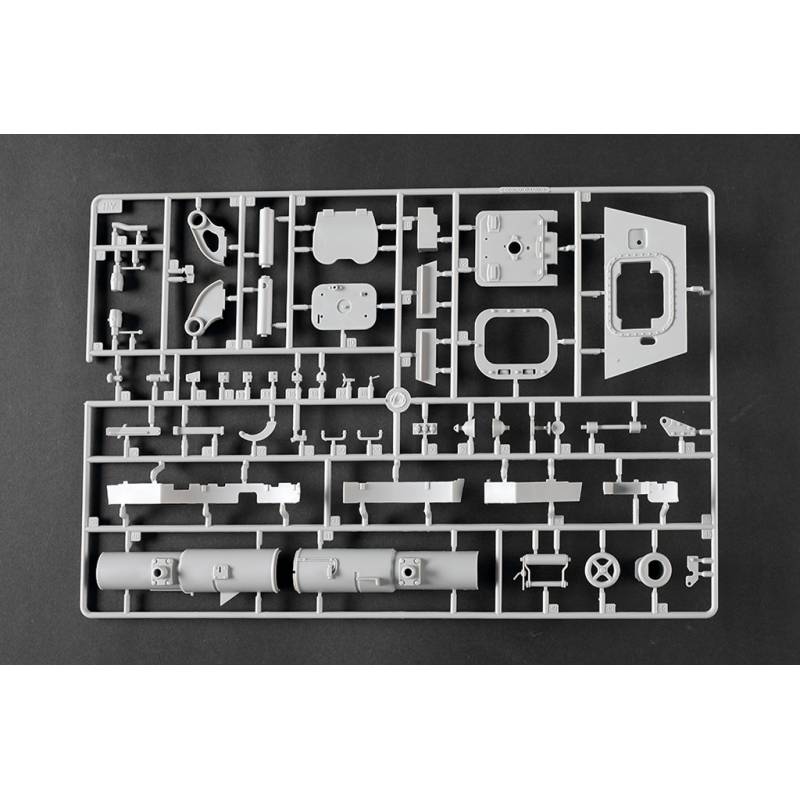 La maquette Trumpeter au 1:16 constitue une reproduction spectaculaire et extrêmement complète de ce char légendaire. Avec plus de 1 500 pièces, elle propose une caisse supérieure et inférieure moulées par glissières multi-directionnelles, un intérieur entièrement détaillé, une tourelle complète et des chenilles à maillons individuels. Des éléments en photodécoupe, des pièces métalliques (tube de canon, câbles cuivre, axes et ressorts) viennent enrichir le réalisme de l’ensemble. Le modèle assemblé atteint environ 706 mm de longueur pour 233 mm de largeur, faisant de ce kit une pièce maîtresse pour les maquettistes experts et les passionnés de blindés allemands lourds.