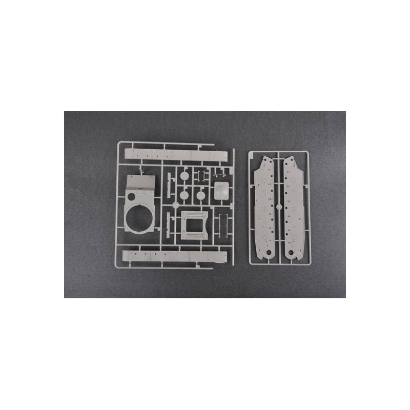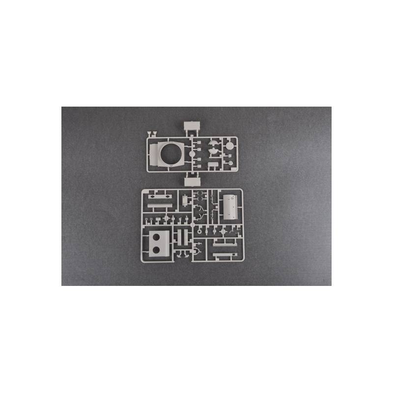 Le kit Trumpeter propose une reproduction détaillée de cette variante particulière avec une qualité de moulage moderne et un haut niveau de finesse. La boîte comprend plus de 430 pièces réparties sur 25 grappes, incluant la tourelle et la coque inférieure. La coque bénéficie d’un moulage multi-glissières permettant d’obtenir des formes précises et des détails affinés tout en simplifiant l’assemblage.