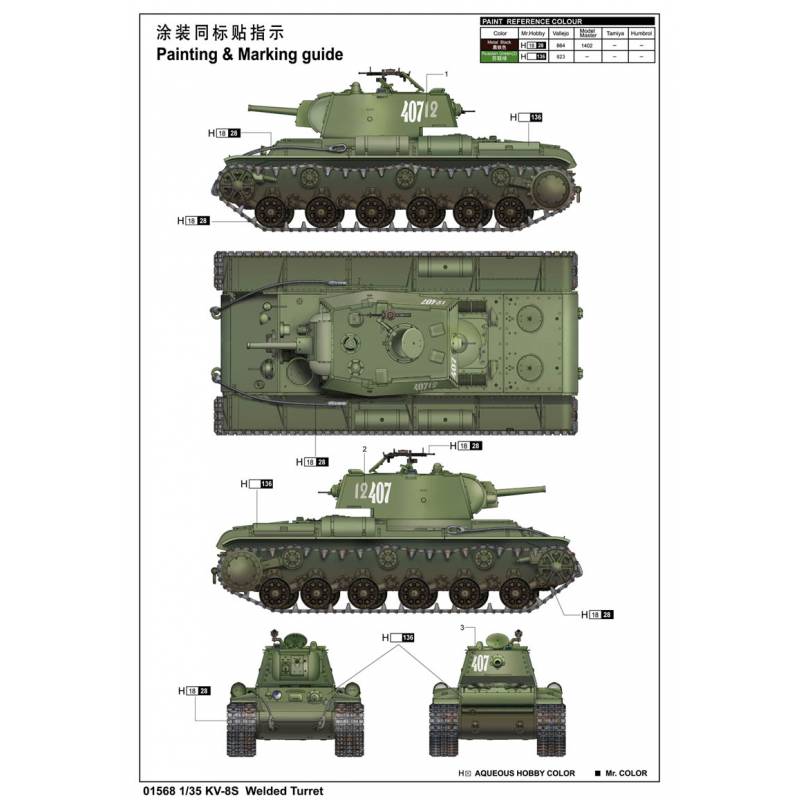 La maquette du char KV-8S à tourelle soudée à l’échelle 1/35 proposée par Trumpeter permet de reproduire une version particulière et moins connue de la famille des chars lourds soviétiques KV engagés sur le front de l’Est durant la Seconde Guerre mondiale. Ce véhicule combine la puissance de protection du KV avec une arme spécialisée destinée au combat rapproché, illustrant l’adaptation constante de l’industrie soviétique face aux conditions extrêmes des combats urbains et des positions fortifiées allemandes.
