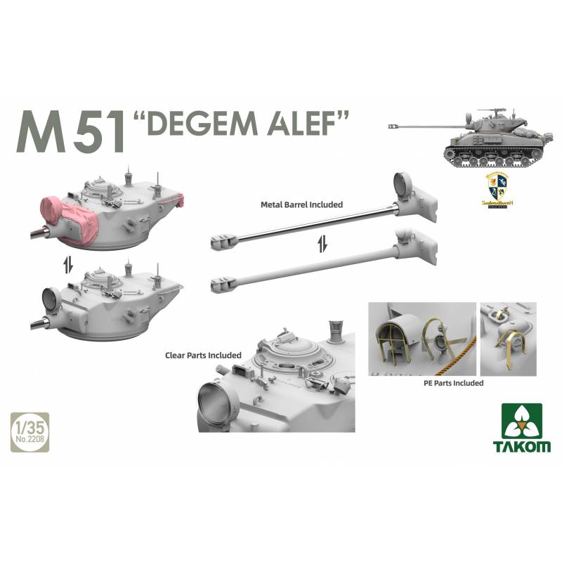 La maquette du char M51 “Degem Alef” à l’échelle 1/35 proposée par Takom permet de reproduire l’une des modernisations les plus célèbres du char Sherman, réalisée par l’armée israélienne dans les années 1960 afin de prolonger l’efficacité opérationnelle de ce blindé devenu obsolète face aux chars modernes de l’époque. Cette transformation donne naissance à l’un des Sherman les plus puissamment armés encore engagés en combat.