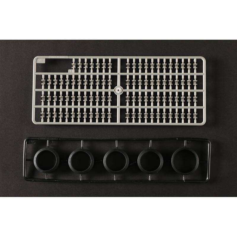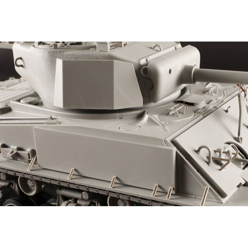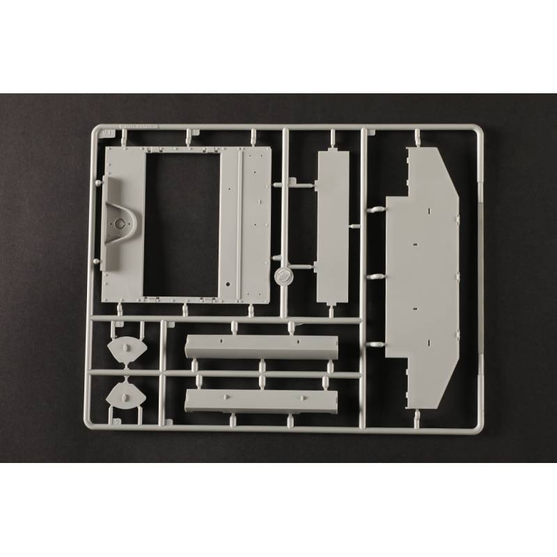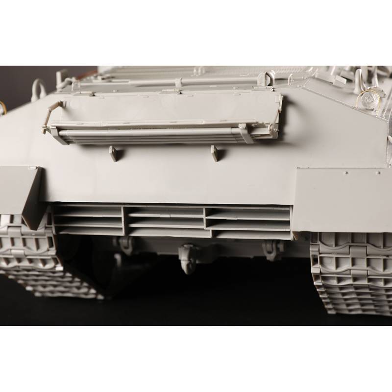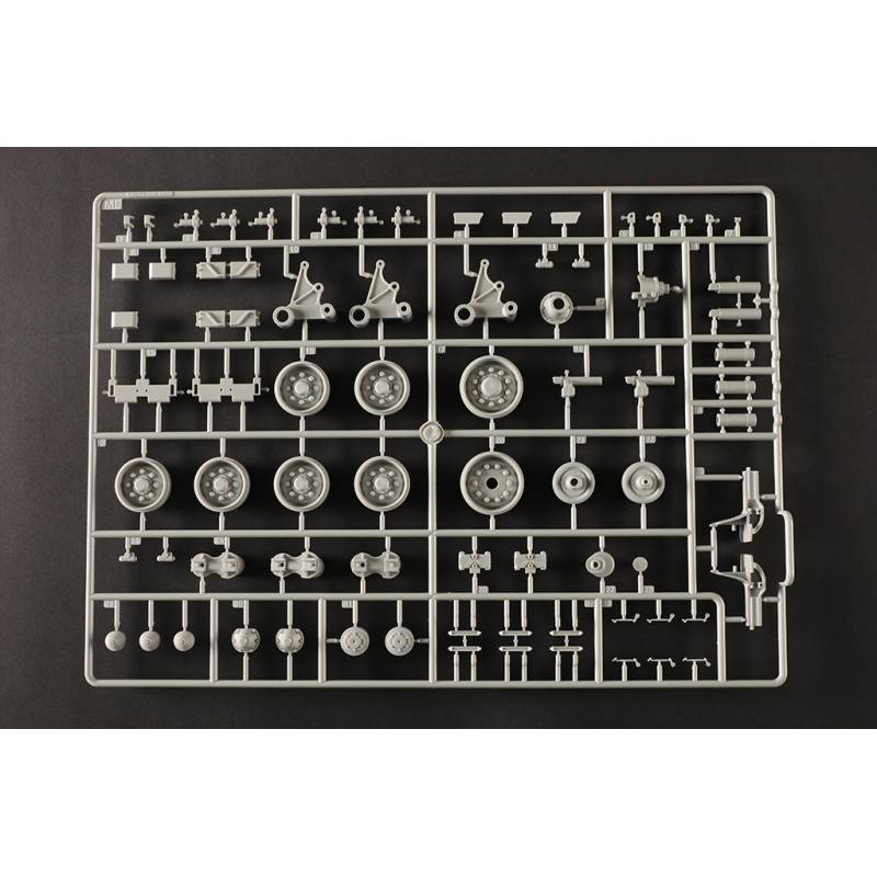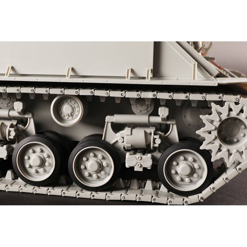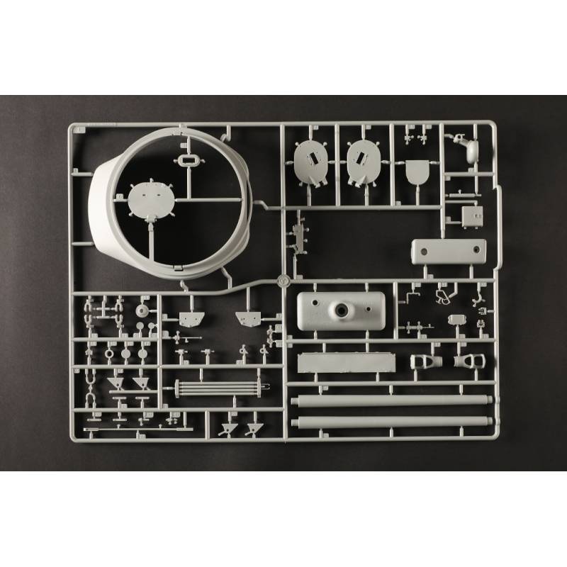Avec plus de 1200 pièces, ce modèle offre un niveau de détail très élevé. La caisse inférieure, la caisse supérieure et la tourelle sont moulées à l’aide de moules multi-glissières permettant une reproduction très précise des formes et des détails. Les chenilles sont composées de maillons individuels, ce qui permet d’obtenir un rendu réaliste une fois le modèle assemblé.