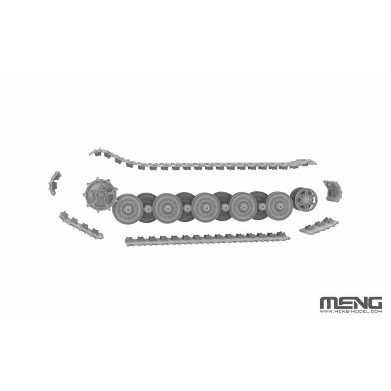 La maquette MENG 72-011 à l’échelle 1/72 propose une reproduction fidèle de cette version à tourelle Henschel. Malgré sa taille compacte, le kit offre un haut niveau de détail avec une gravure fine, notamment sur les plaques de blindage, la tourelle et les équipements extérieurs.