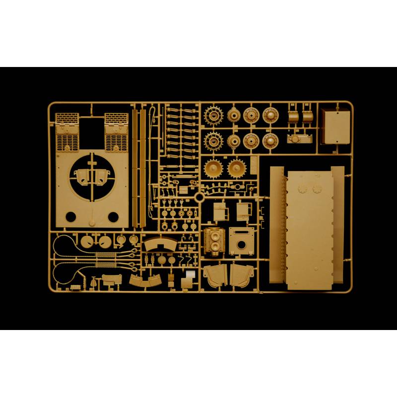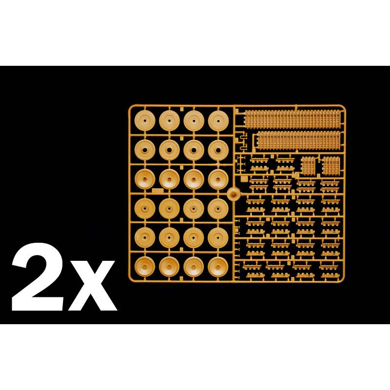 Le modèle offre deux options pour les chenilles : des chenilles souples en caoutchouc collable pour un montage rapide, ou des chenilles de type “link and length” en plastique pour un rendu plus réaliste. Cette flexibilité permet de s’adapter au niveau et aux préférences du maquettiste.