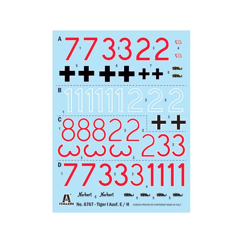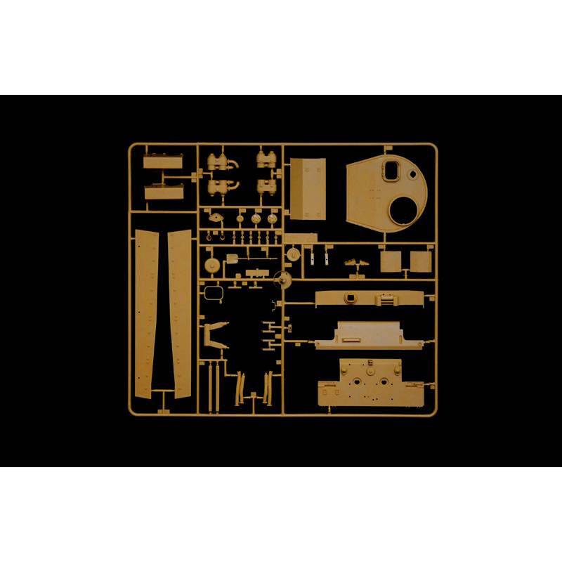 La maquette Italeri réf. 6767 à l’échelle 1:35 propose une reproduction fidèle de cette version initiale. Le kit restitue avec précision les lignes massives du Tiger I, avec une attention particulière portée aux détails de la tourelle, du mantelet et du canon de 88 mm.