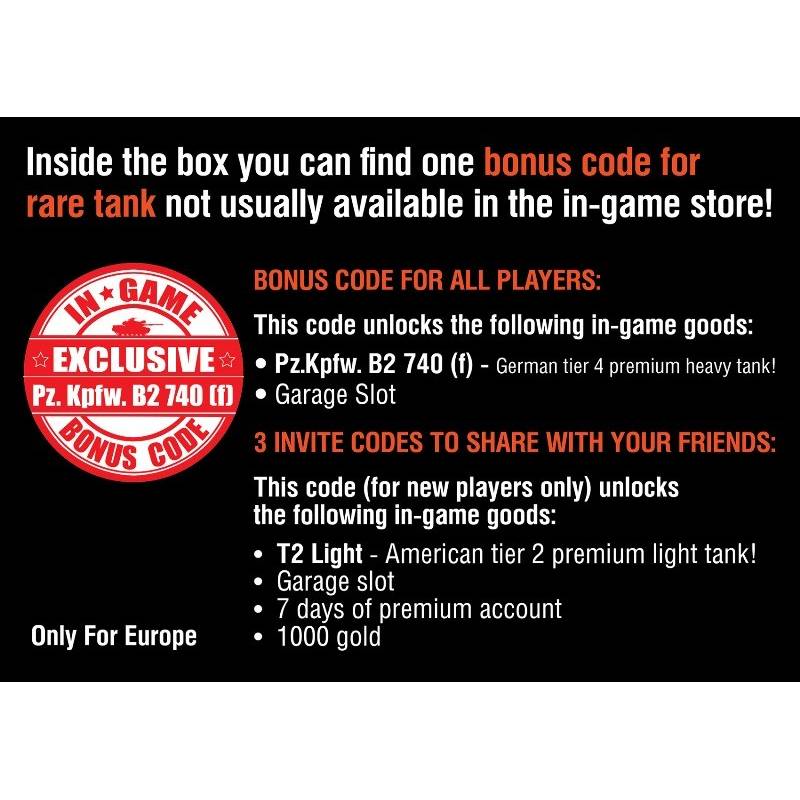 1 code bonus pour débloquer un nouveau blindé dans le jeu (Pz.Kpfw.B2 740 (f)).