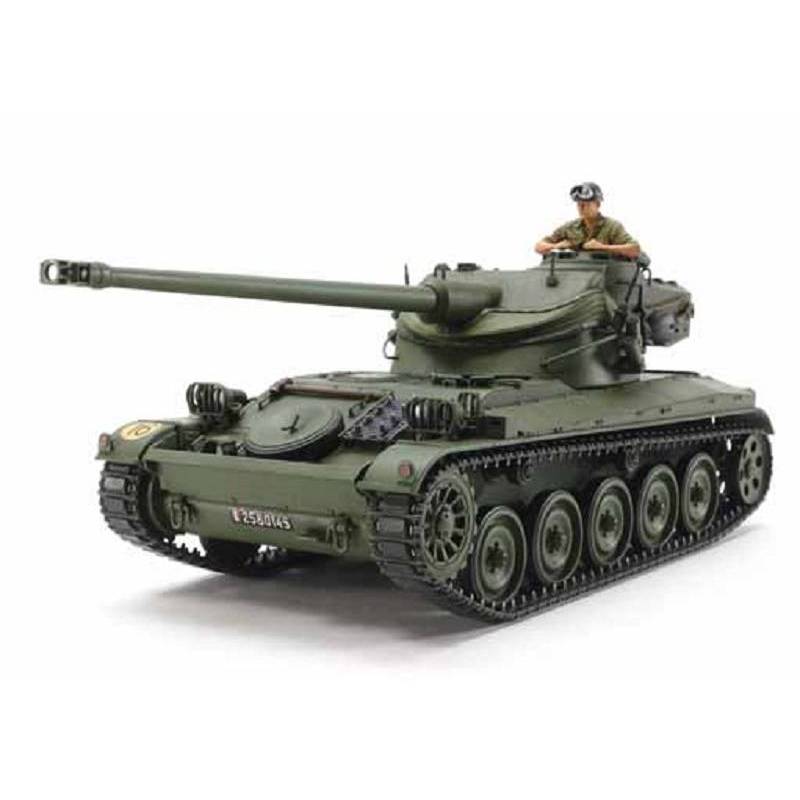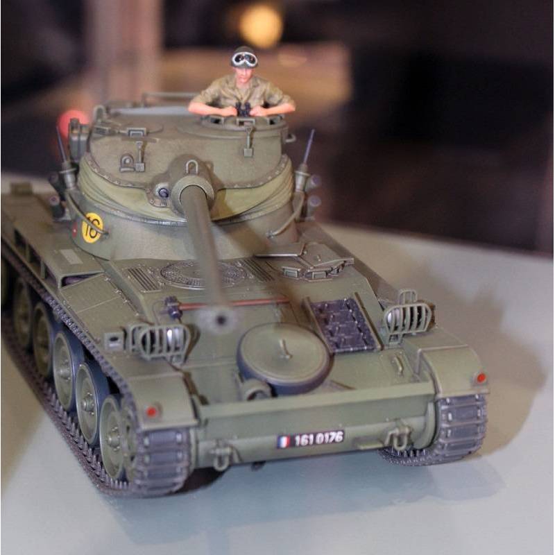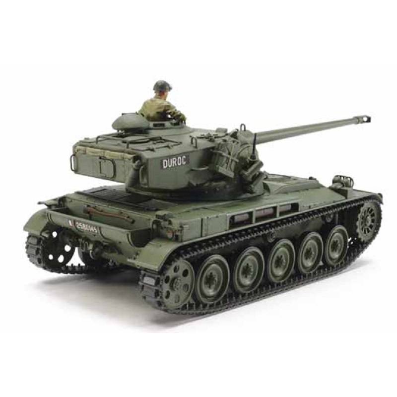 Ce blindé est un des plus grand succès de l’industrie d’armement française. Construit entre 1952 et 1985 en de multiples versions, il a servi dans l’armée française et de nombreux autres pays. La version reproduite ici est celle à tourelle oscillante équipée d’un canon de 75mm. Elle servit dans les forces françaises mais aussi en Israël. Après le Leclerc, le B1 et le SOMUA S35, le parc de chars français se renforce chez Tamiya !