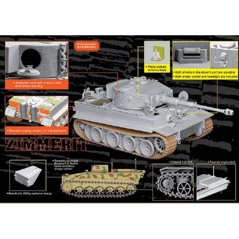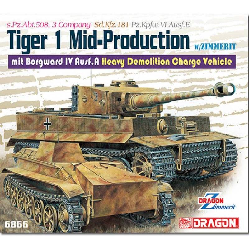 maquette char Tiger I Mid-Production w/Zimmerit mit Borgward IV Ausf.A Heavy Demolition Charge Vehicle DRAGON 6866 1/35ème maquette char promo