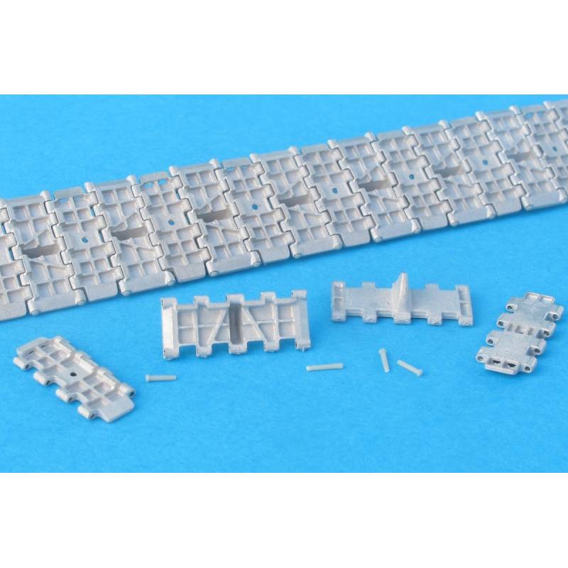 maquette chenilles métal maillon par maillon avec connecteurs en résine, permet un "sagging" naturel et réaliste