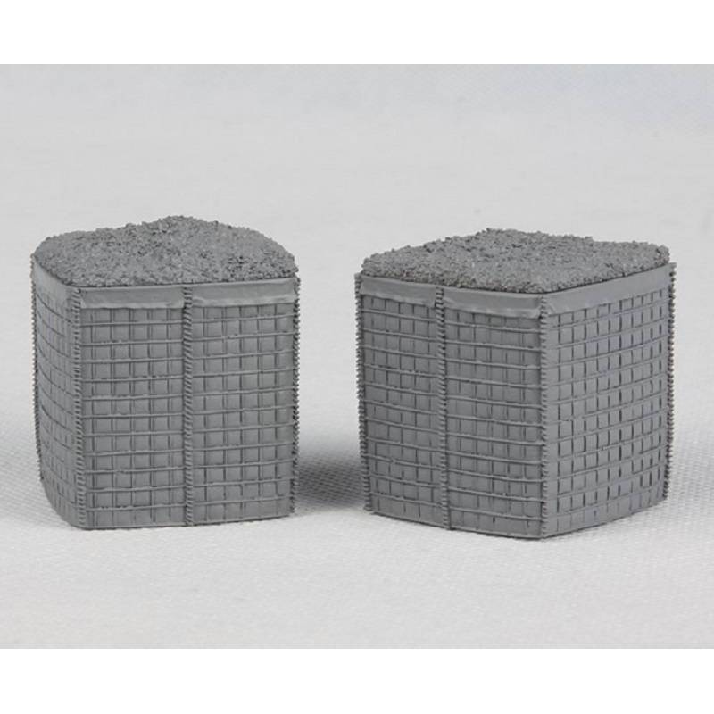 2 paniers en treillis métallique remplis de terre. Ce type de protection étant très utilisés dans les conflits urbains modernes. (kits en résine).
