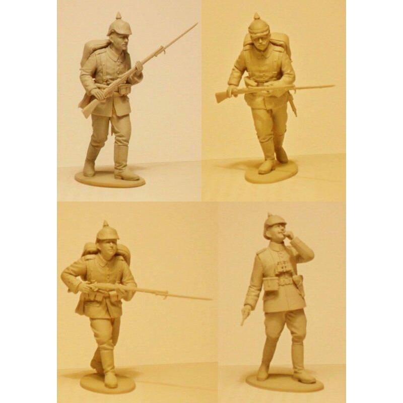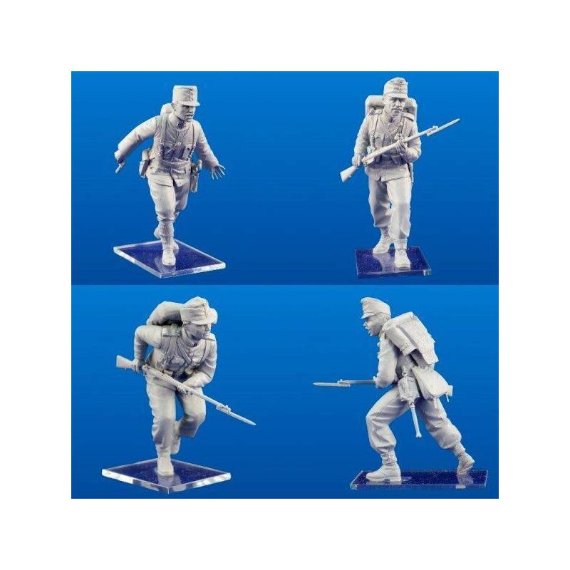 – 4 figurines finement sculptées représentant des fantassins des trois camps :