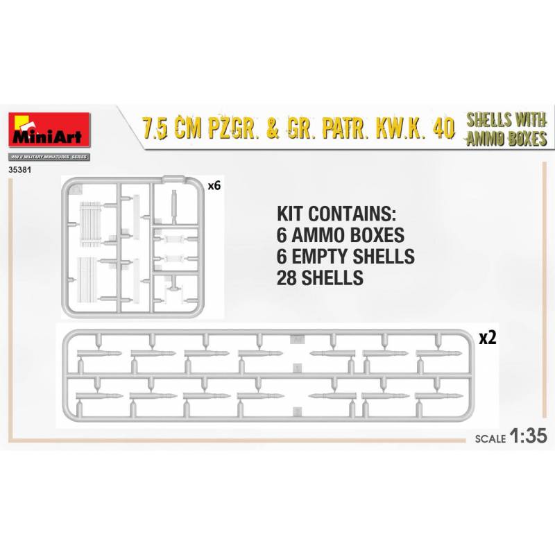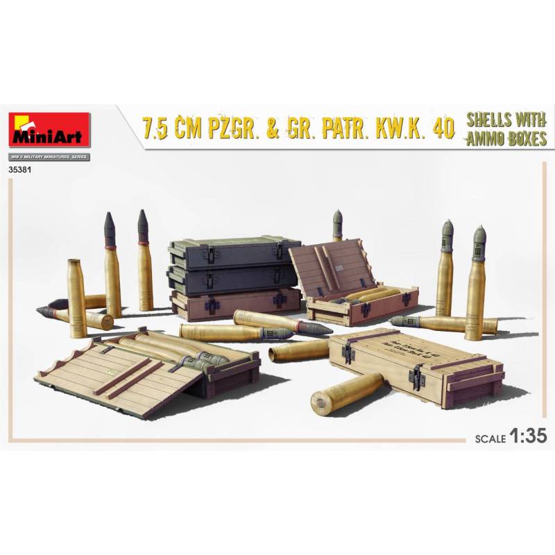 7.5 CM PZGR. & GR. PATR. KW.K. 40 SHELLS WITH AMMO BOXES