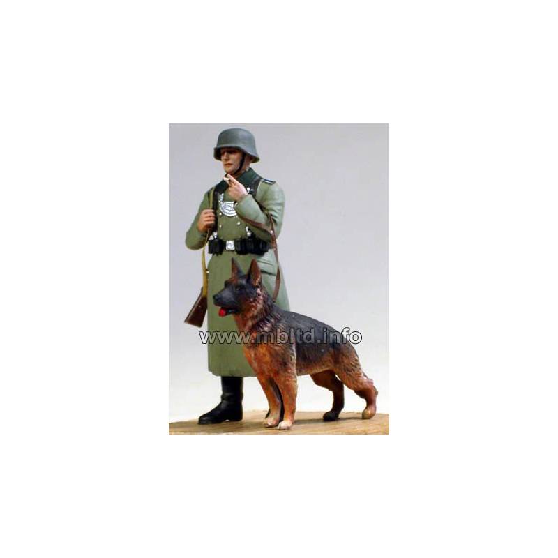 • Un soldat allemand supplémentaire en posture d’interaction avec les civils avec un chien.