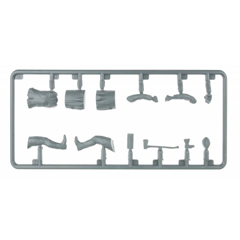 La composition évoque une scène typique du quotidien de la Wehrmacht entre deux combats, où la chaleur d’un repas préparé sur le terrain apportait un réconfort bienvenu. L’équipage en tenue de campagne, les outils de cuisine et la remorque patinée offrent au maquettiste un vaste terrain d’expression pour la peinture et la mise en scène : uniformes légèrement souillés, effets de chaleur sur les métaux, traces de suie et de boue.