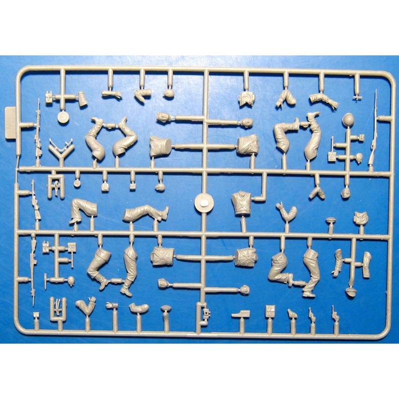 Le kit propose cinq figurines dans des poses d’attaque dynamiques, permettant de représenter une progression sous le feu ou un assaut contre des positions ennemies. Les uniformes, équipements et armements sont reproduits avec précision, incluant les éléments caractéristiques des marines soviétiques de cette période.