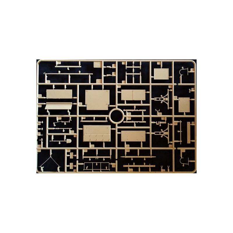 Le kit Riich Models au 1/35 propose une reproduction très détaillée de cette grande cuisine de campagne allemande sous forme d’un ensemble hippomobile. La maquette représente le chariot de cuisine avec un haut niveau de finesse, idéal pour illustrer l’aspect souvent méconnu mais fondamental de la logistique militaire. Deux figurines sont incluses, permettant de mettre en scène le service ou la préparation des repas et d’apporter de la vie à un diorama.