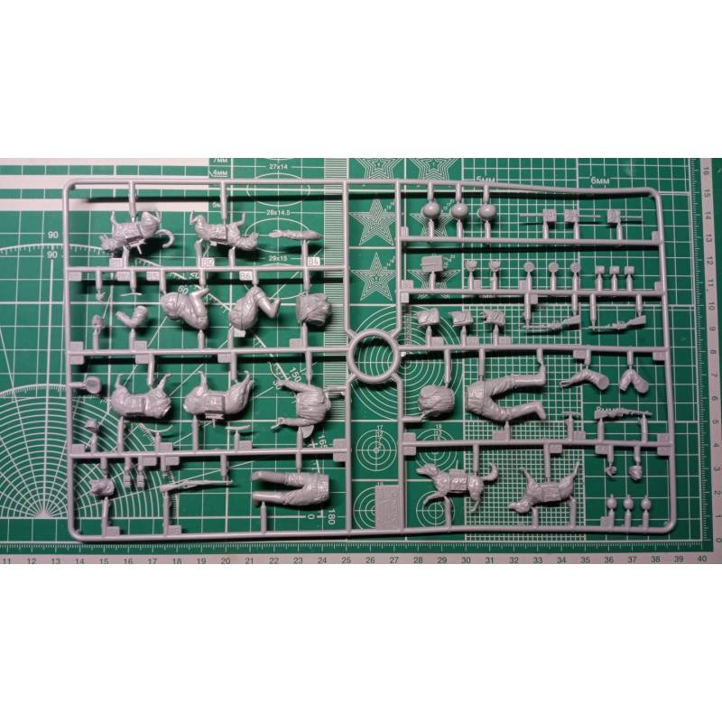 À l’échelle 1:35, ces figurines mesurent environ 50 mm de hauteur une fois assemblées, et s’intègrent parfaitement dans un diorama représentant le front de l’Est, en complément de véhicules ou de positions défensives. Le set comprend 55 pièces, offrant un bon équilibre entre niveau de détail et accessibilité au montage.