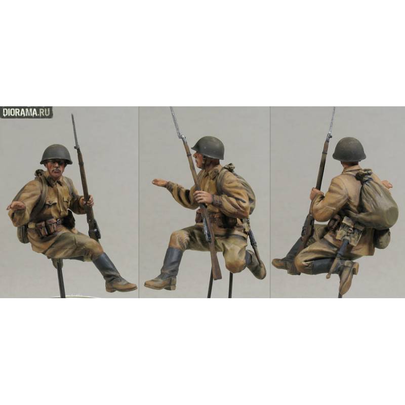 La finesse de gravure propre à MiniArt met en valeur les plis des vêtements, les sangles, les bottes et les armes, offrant une excellente base pour la peinture et la patine. Ce set est idéal pour accompagner un char soviétique, un véhicule de transport ou un diorama de progression offensive, apportant une forte dynamique visuelle et une dimension humaine marquée.
