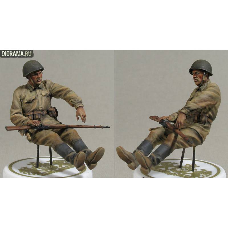 Le coffret comprend cinq figurines non assemblées et non peintes, sculptées dans des positions adaptées au transport en mouvement ou à l’attente, avec des postures crédibles et naturelles. Les attitudes traduisent l’équilibre précaire, la vigilance ou la fatigue des soldats, renforçant le réalisme de l’ensemble. Les uniformes et équipements sont fidèlement reproduits et correspondent aux dotations soviétiques des années 1942 à 1945, incluant armes individuelles et équipements réglementaires.