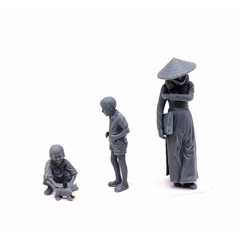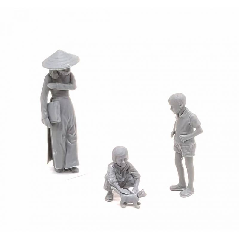 Ce set est idéal pour compléter un diorama en zone urbaine vietnamienne ou japonaise, dans un contexte civil ou en arrière-plan d’une scène militaire, apportant une touche de réalisme social et culturel à vos compositions. Il peut également être utilisé de manière autonome comme une scénette de la vie quotidienne d’Asie du Sud-Est pendant la guerre du Vietnam.