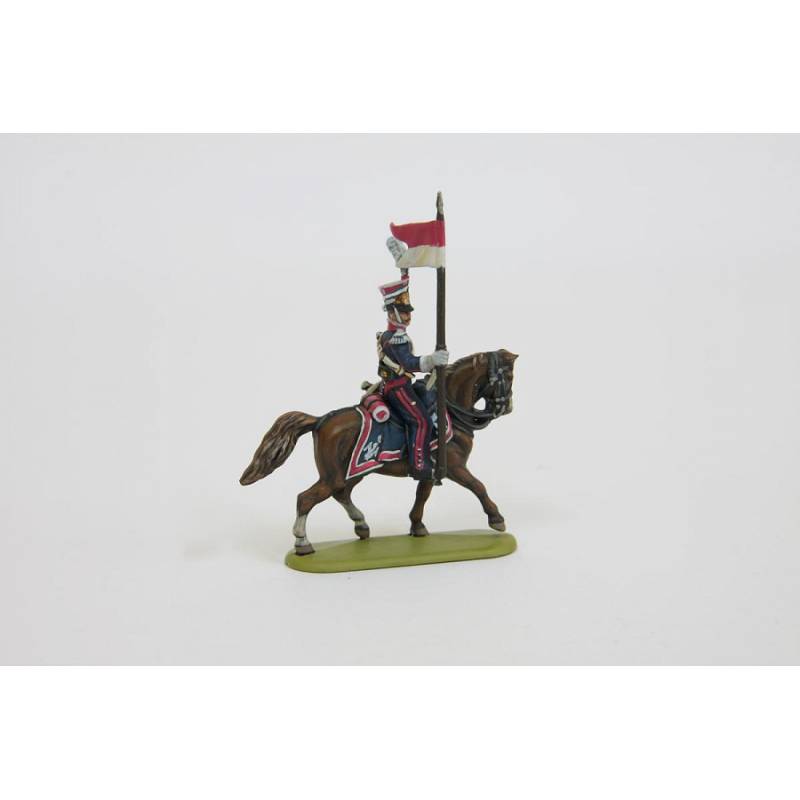 Lorsqu’en 1806 Napoléon Ier entra à Varsovie, il fut escorté par un groupe de nobles polonais dont l’allure martiale et l’excellence militaire le marquèrent profondément. Séduit par leur discipline et leur bravoure, l’Empereur ordonna en 1807 la création d’un régiment de cavalerie légère polonaise au sein de la Garde impériale. Ces cavaliers d’élite, mieux connus sous le nom de Lanciers polonais de la Garde, étaient armés des armes traditionnelles de la cavalerie légère – sabre, pistolets et carabine – mais se distinguaient surtout par l’usage de la lance, une arme qui allait s’avérer redoutable sur les champs de bataille napoléoniens.