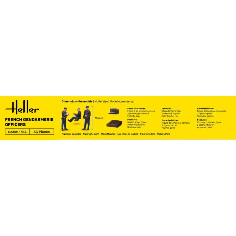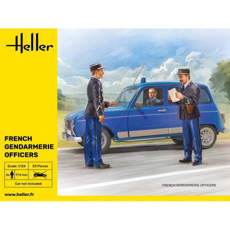 Les figurines permettent de représenter différentes époques en adaptant le schéma de peinture : bleu marine pour les tenues des années 70-90, bleu clair et marine pour les uniformes actuels. Le kit ne contient pas de peinture, mais Heller recommande une gamme de teintes faciles à trouver (bleu gendarmerie, noir, blanc, beige, gris métal...).