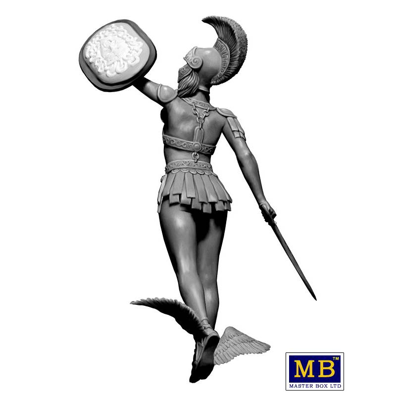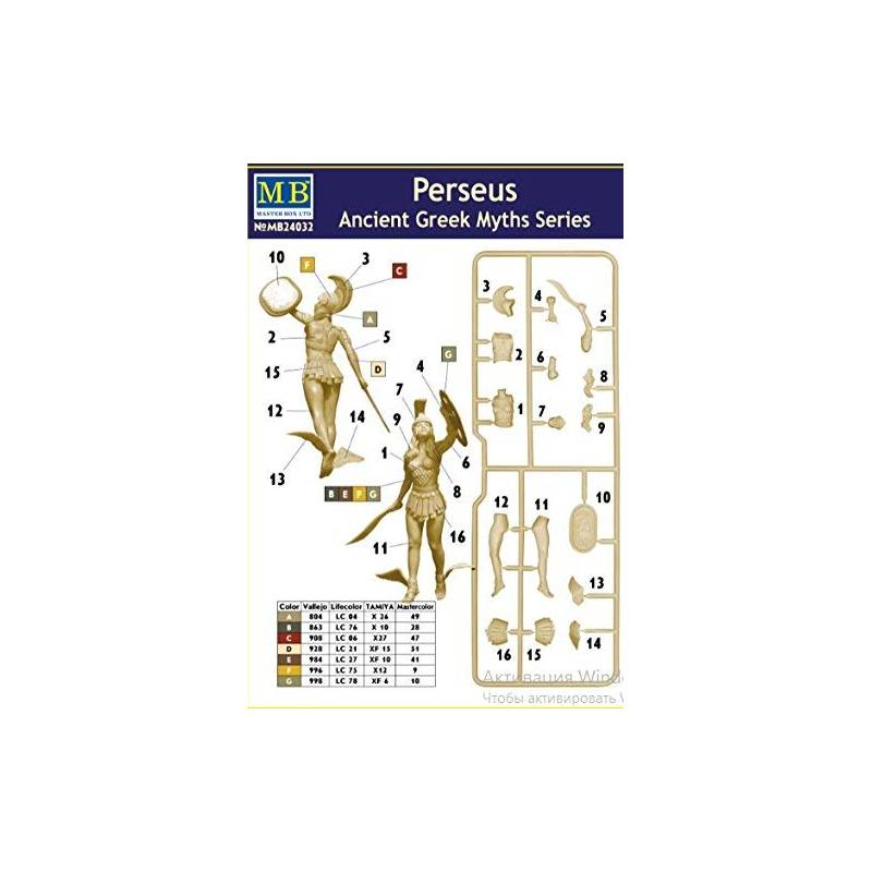 La figurine Master Box 24032 représente Persée dans une interprétation artistique inspirée de ces récits mythologiques. La sculpture met en valeur la posture héroïque du personnage, son équipement de guerrier antique et les détails caractéristiques des représentations classiques de la mythologie grecque. L’armure, les armes et les éléments vestimentaires rappellent les représentations traditionnelles des héros grecs dans l’art et la sculpture.