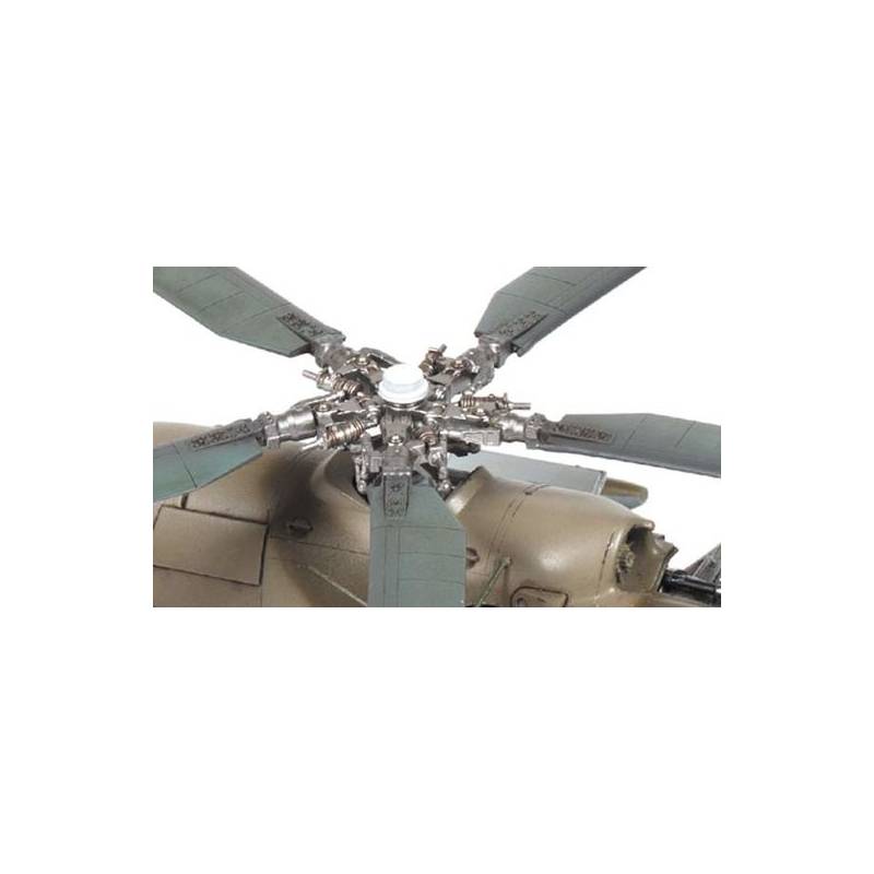L'hélicoptère d'attaque Mi-24 a été développé par le bureau d'études M.L. Mile à la fin des années 1960 et adopté par l'armée soviétique en 1976. C'est devenu la modification la plus populaire du Mi-24 - ils ont été construits environ un millier. La première guerre des Mi-24V a été l'Afghanistan, où l'hélicoptère s'est révélé être une machine fiable, bien protégée et formidable pour l'ennemi. En plus des bombes et des missiles à six nœuds de la suspension externe, le Mi-24V a sous le cockpit avant, où se trouve le tireur - l'opérateur de l'armement embarqué, un support rotatif avec une mitrailleuse à quatre canons de gros calibre de 12,7 mm YakB-12.7. Si, au lieu de cela, vous décidez d'utiliser également le canon de 23 mm GSH-23L, vous obtiendrez une modification du Mi-24VP.