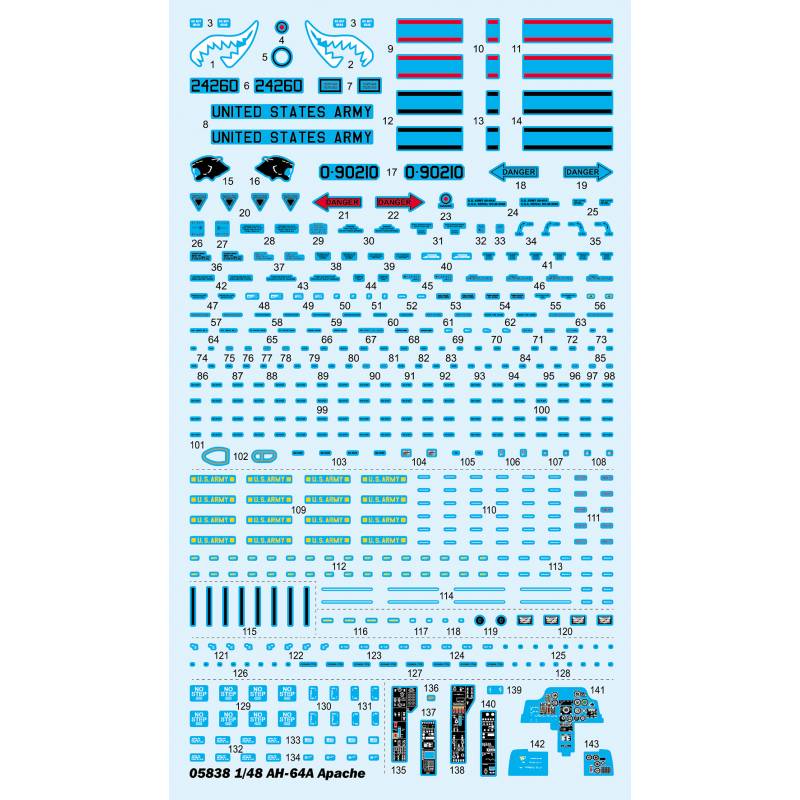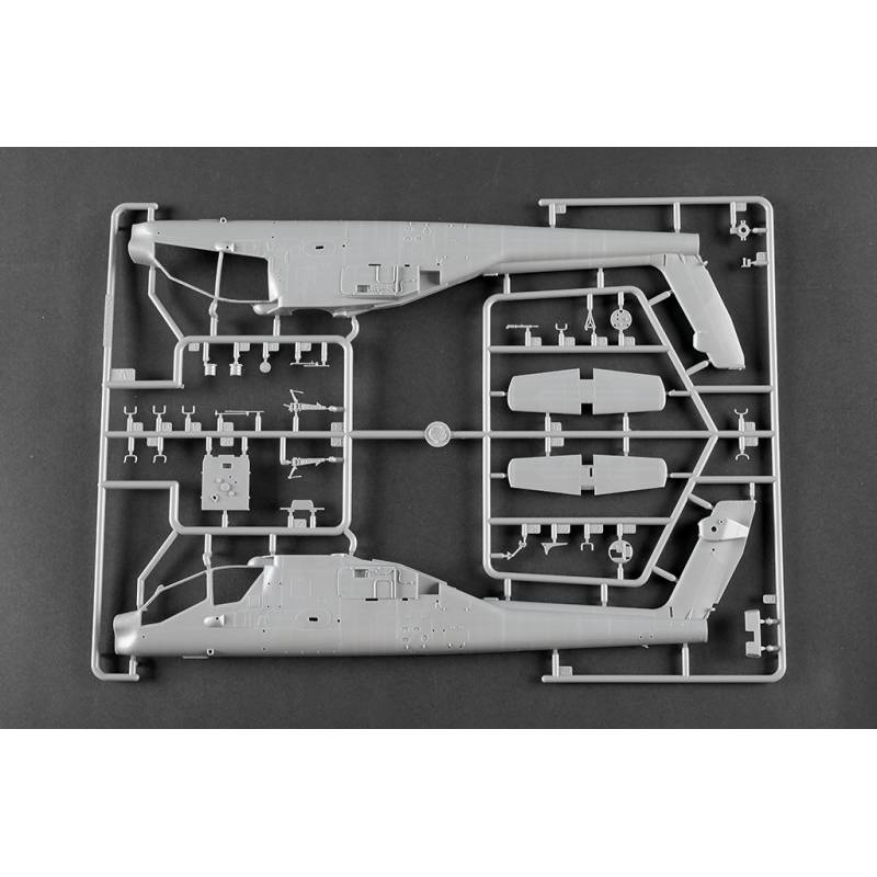 Ce kit Trumpeter au 1/48 restitue fidèlement la version AH-64A avec un haut niveau de précision :