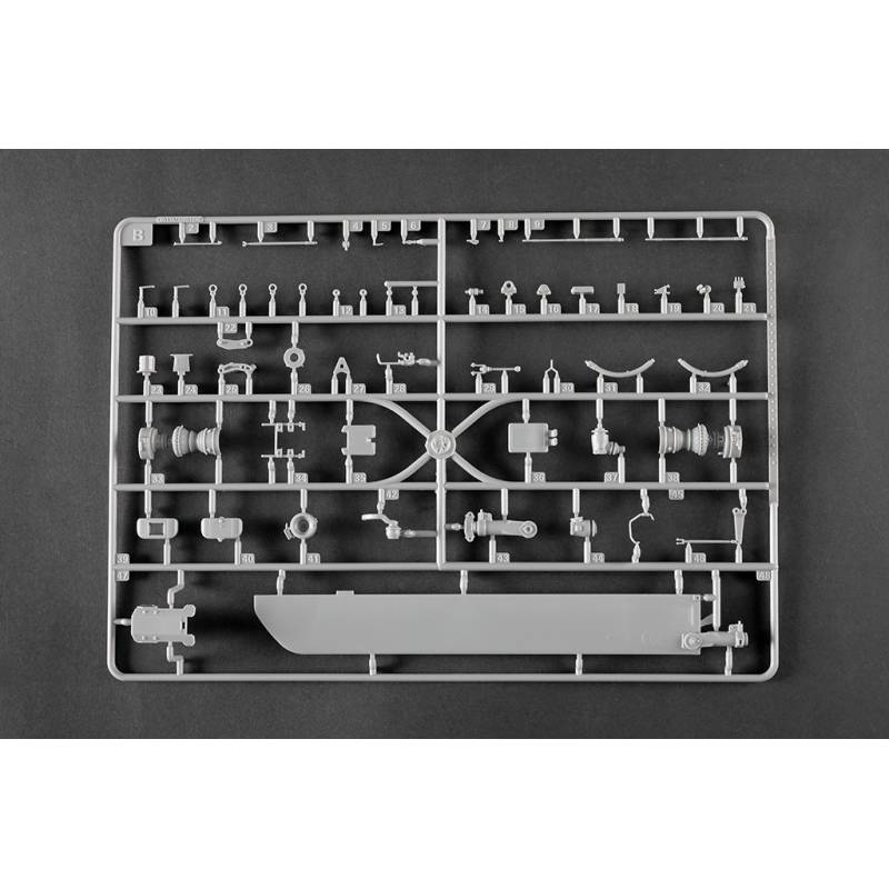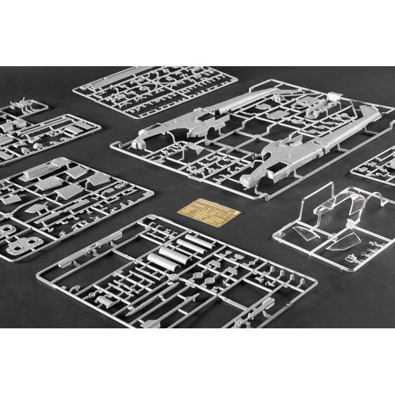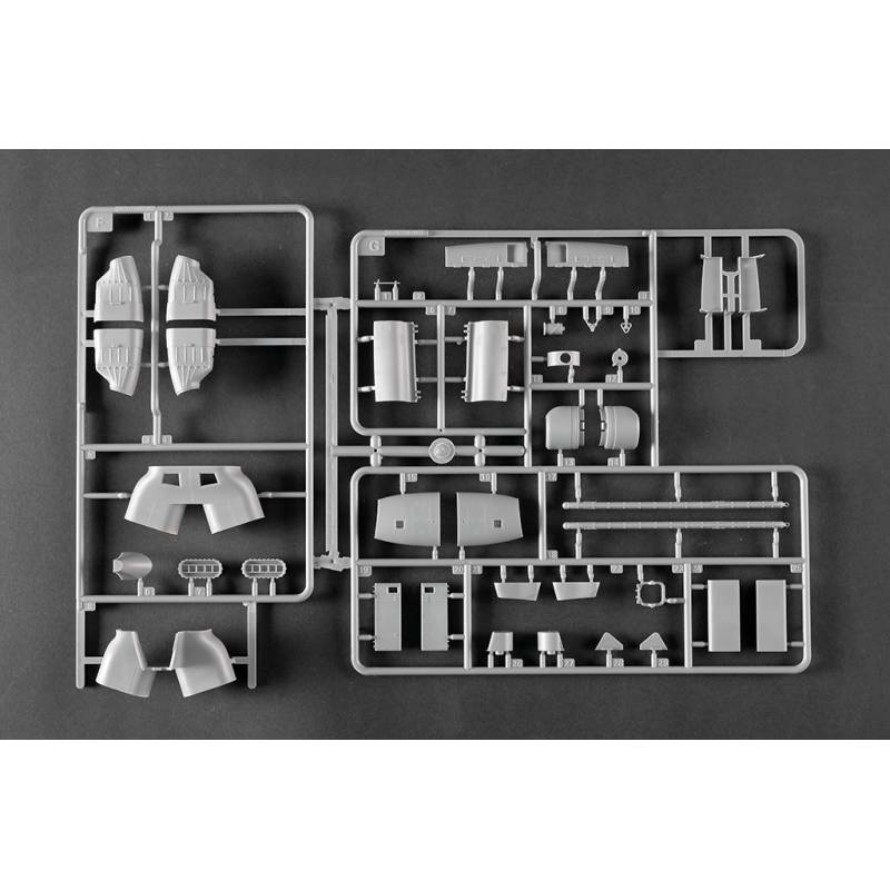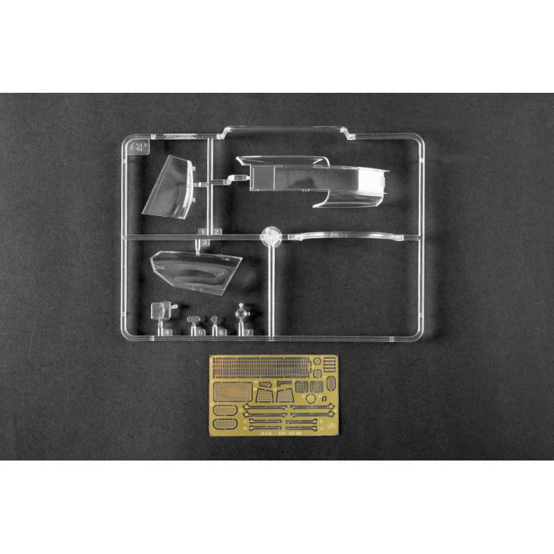 Le kit comprend plus de 380 pièces réparties sur 10 grappes. Le fuselage gauche et droit est moulé avec des détails authentiques, le cockpit est finement détaillé et les rotors bénéficient d’une reproduction soignée. Une planche de photodécoupe est incluse pour affiner certains éléments. Cette maquette, prévue pour une sortie en août 2025, s’adresse aux maquettistes confirmés et aux passionnés d’aéronautique militaire du USMC.