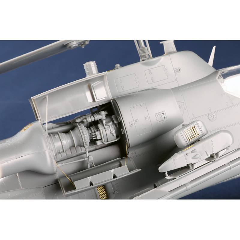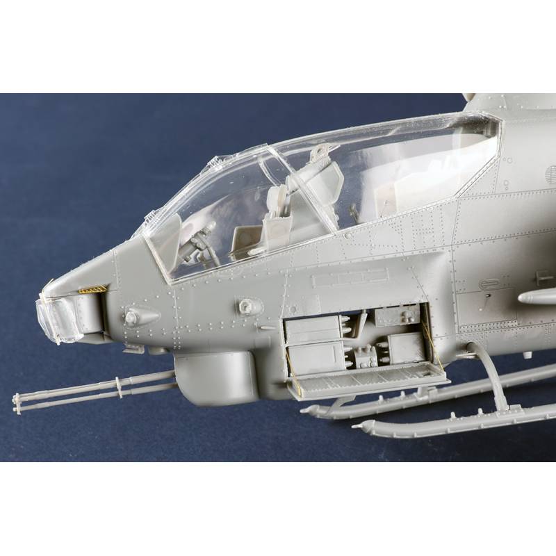 Le Super Cobra se distingue par sa silhouette étroite, son tandem cockpit caractéristique et ses performances élevées en combat rapproché. Il fut le premier hélicoptère d’attaque à être qualifié à la fois pour le missile air-air AIM-9L Sidewinder et pour le missile anti-radar AGM-122 Sidearm, tous deux utilisables sur le même rail de lancement LAU-7. Le Sidearm offrait une capacité de suppression des défenses ennemies avec une portée supérieure à 15 km, tandis que le Sidewinder assurait une défense aérienne rapprochée tous aspects. Ces capacités faisaient du AH-1W un hélicoptère particulièrement polyvalent sur les théâtres d’opérations modernes.