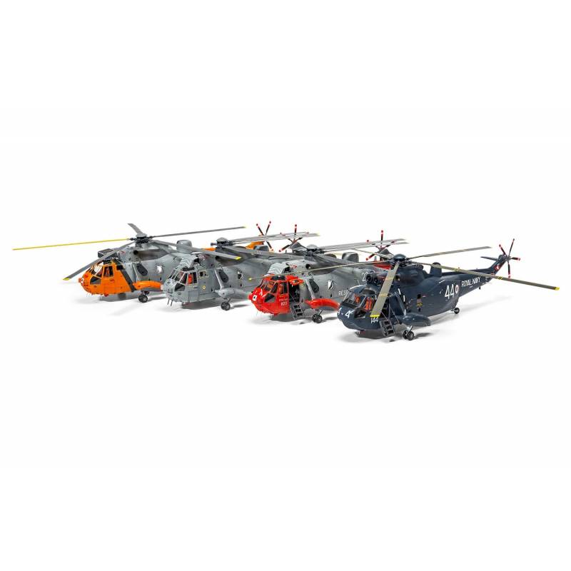 Le HAS.1 correspond aux premières machines de lutte ASM de la Fleet Air Arm, encore proches dans leur concept des SH-3 initiaux mais adaptées à l’environnement britannique. Le HAS.2 introduisit diverses améliorations techniques et électroniques, tandis que le HAS.5 représenta une évolution plus poussée avec des équipements modernisés et une efficacité accrue dans la détection et la traque des sous-marins. La version HU.5, quant à elle, fut davantage orientée vers les missions utilitaires, de transport, de soutien logistique, d’assaut ou de sauvetage, devenant l’une des silhouettes les plus familières de l’hélicoptère britannique.