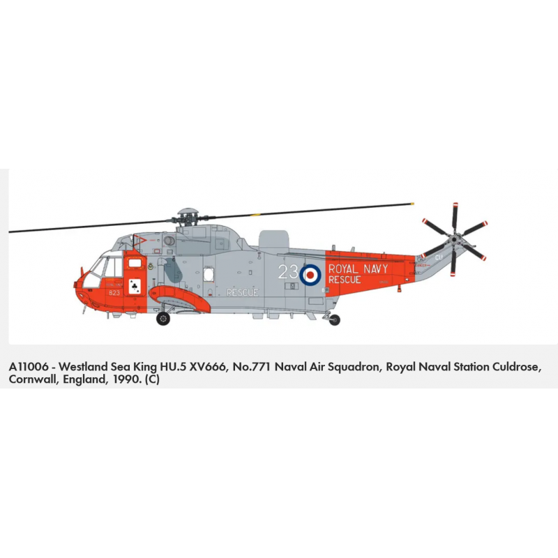Le kit propose quatre décorations qui illustrent parfaitement la carrière du même appareil à travers le temps. On peut ainsi représenter un Sea King HAS.1 du 826 Naval Air Squadron à Culdrose en 1970, un HAS.5 du 814 Naval Air Squadron à Culdrose en 1988, un HU.5 du 771 Naval Air Squadron en 1990 ou encore un HU.5 exploité par Heli-Operations à Portland en 2022. Cette diversité fait de cette boîte un sujet particulièrement attrayant pour les amateurs d’hélicoptères britanniques, d’aviation navale ou d’appareils de sauvetage.