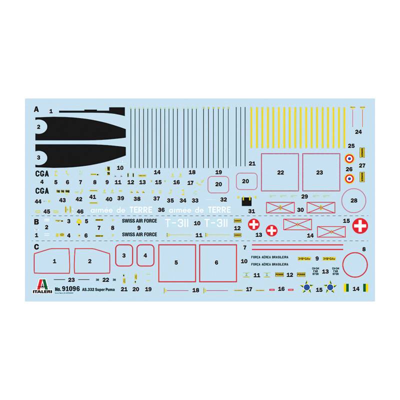 Le kit Italeri 91096 à l’échelle 1:72 propose une reproduction fidèle de cet hélicoptère polyvalent. Une fois assemblé, le modèle mesure environ 25,5 cm de longueur, offrant un bon niveau de détail tout en restant accessible au montage.