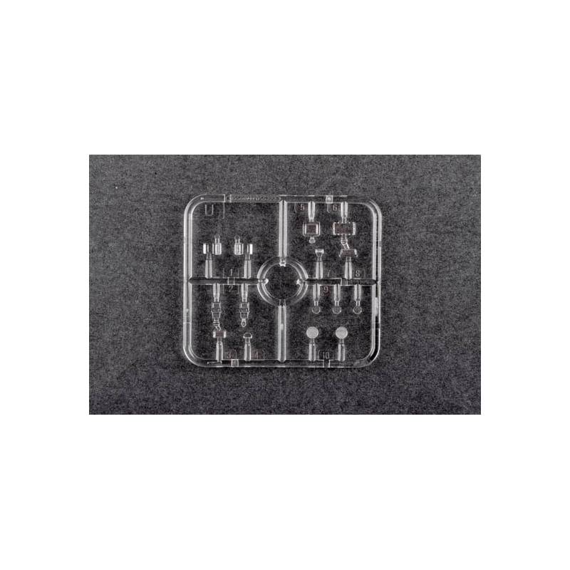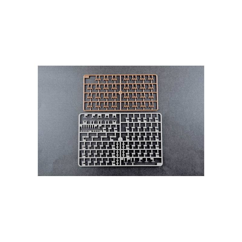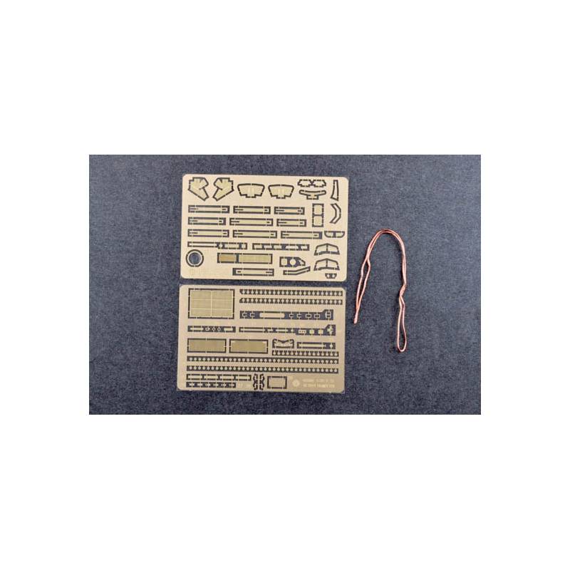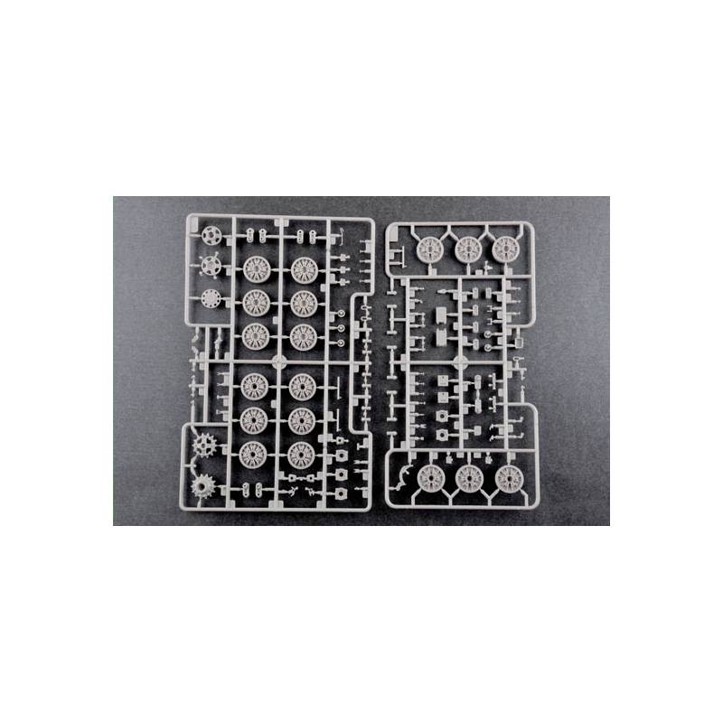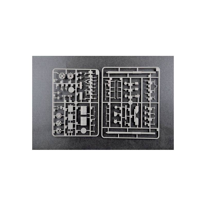 Les chenilles sont composées de 217 maillons individuels, permettant de reproduire naturellement la tension et le poids caractéristiques du véhicule une fois monté. Des éléments en photodécoupe sont fournis pour affiner certains détails extérieurs, tandis que des câbles en cuivre et du fil en laiton permettent de reproduire avec réalisme les équipements remorquage et accessoires externes. L’ensemble offre de nombreuses possibilités de mise en peinture et de patine pour représenter un véhicule en exercice, en opération ou dans un décor contemporain.