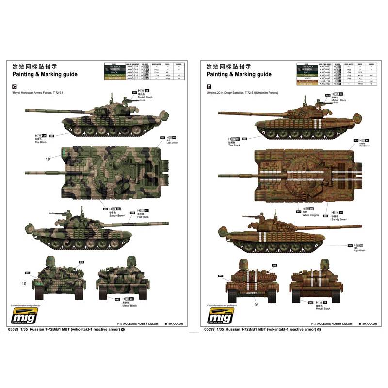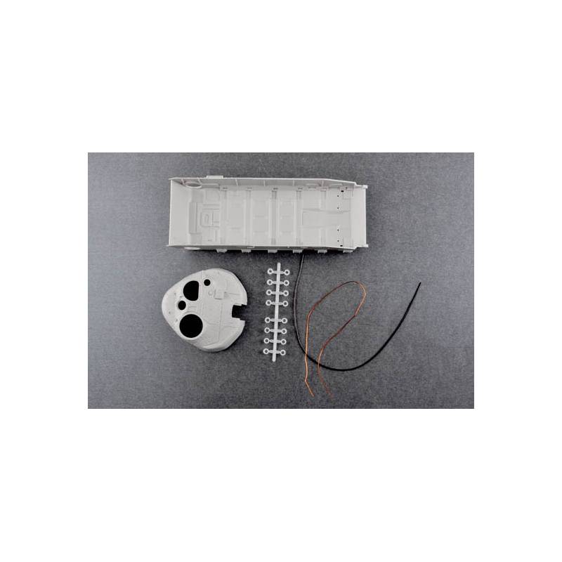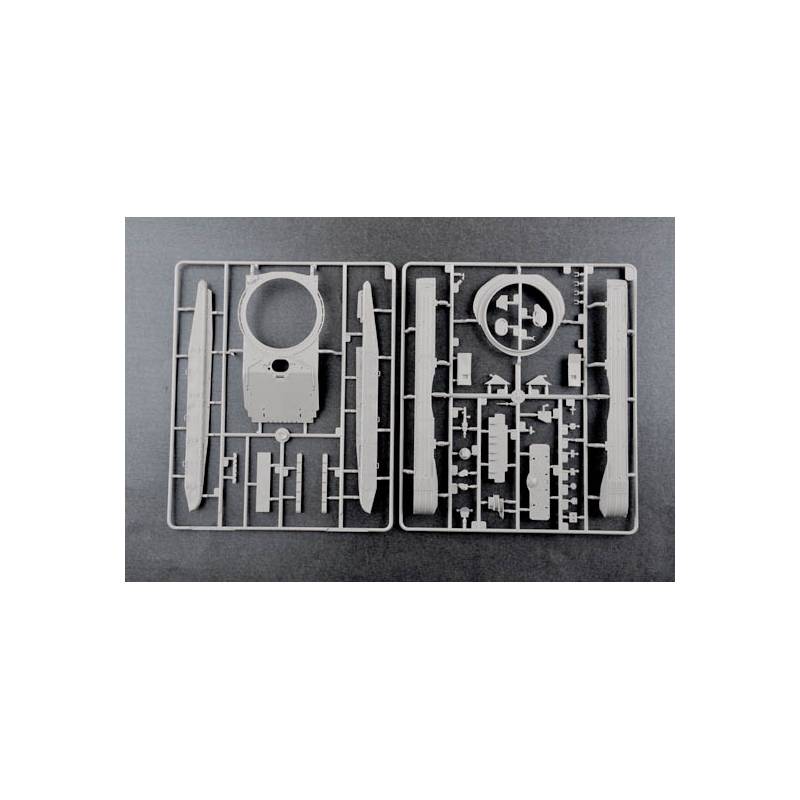 Le kit Trumpeter propose une reproduction extrêmement détaillée de cette version modernisée. La boîte comprend plus de 1300 pièces permettant de restituer fidèlement les formes complexes de la tourelle, de la coque et des nombreux blocs de blindage réactif. La coque inférieure et la tourelle bénéficient d’un moulage multi-glissières assurant une bonne finesse des détails tout en facilitant l’assemblage des formes principales.