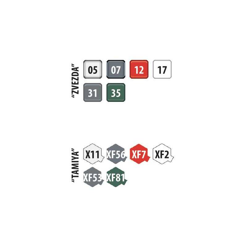 Peintures recommandées : Tamiya X-11, XF-2, XF-7, XF-53, XF-56, XF-81