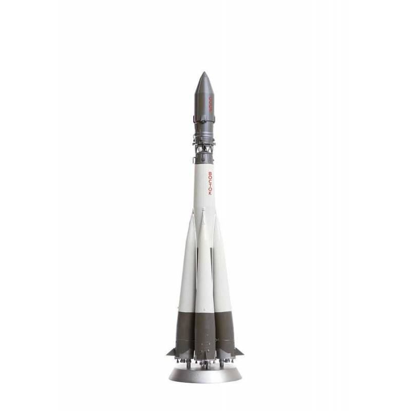 Le modèle Zvezda au 1/144 reproduit avec précision la fusée Vostok et le vaisseau Vostok-1. La maquette comprend 107 pièces finement moulées et permet de représenter la configuration historique du lancement du 12 avril 1961. Les proportions fidèles du lanceur, la capsule supérieure et les détails caractéristiques des moteurs R-7 sont minutieusement restitués.
