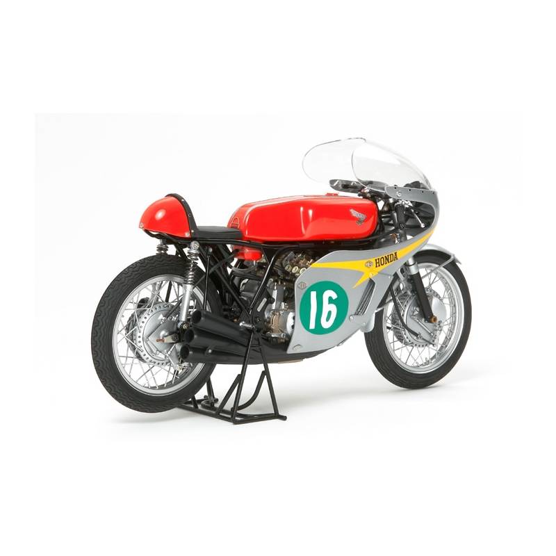 La maquette Tamiya Honda RC166 GP Racer 1966 World Championship Winner à l’échelle 1/12 permet de reproduire l’une des motos de compétition les plus sophistiquées et emblématiques de l’histoire des Grands Prix moto. Développée par Honda pour dominer la catégorie 250 cm³ au milieu des années 1960, la RC166 reste aujourd’hui une référence absolue en matière d’ingénierie motocycliste.