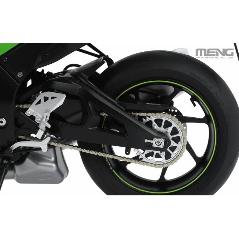 Le modèle reproduit fidèlement les lignes tendues et l’aérodynamisme de la ZX-10RR, avec un soin particulier apporté aux éléments mécaniques : moteur détaillé, cadre, suspensions, système de freinage et échappement. Les carénages pré-colorés offrent une finition brillante et homogène, proche d’un modèle d’exposition.