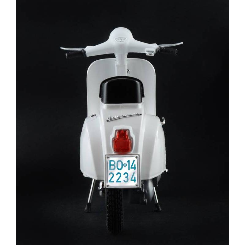 La maquette Italeri au 1/9 permet de reproduire avec précision cette icône de la mobilité urbaine dans un format de grande taille offrant un excellent niveau de détail. Le kit restitue fidèlement les lignes caractéristiques du scooter, depuis la coque monocoque en acier jusqu’aux éléments mécaniques visibles, en passant par les équipements extérieurs et les finitions propres aux modèles d’époque.