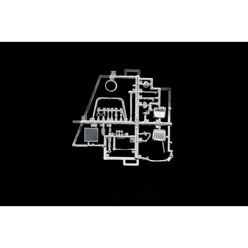 Une planche de décalcomanies permet d’appliquer logos, marquages et plaques d’immatriculation, offrant différentes possibilités de personnalisation du modèle final. Le montage est guidé par une notice détaillée facilitant l’assemblage progressif des sous-ensembles mécaniques et de la carrosserie.