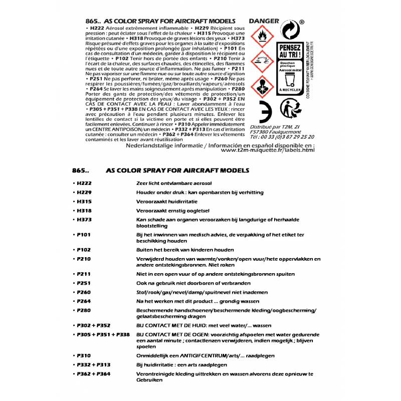 La peinture en bombe AS-31 Gris Ocean 2 RAF est une teinte destinée à la réalisation de maquettes d’avions de la Royal Air Force pendant la Seconde Guerre mondiale. Elle reproduit la couleur Ocean Grey utilisée sur les surfaces supérieures de nombreux chasseurs britanniques à partir de 1941, généralement associée au Dark Green et au Medium Sea Grey dans le schéma de camouflage standard de la RAF. Cette combinaison de couleurs a équipé des appareils emblématiques tels que les Supermarine Spitfire, Hawker Typhoon, Hawker Tempest et certains Hurricane tardifs opérant sur le front européen.