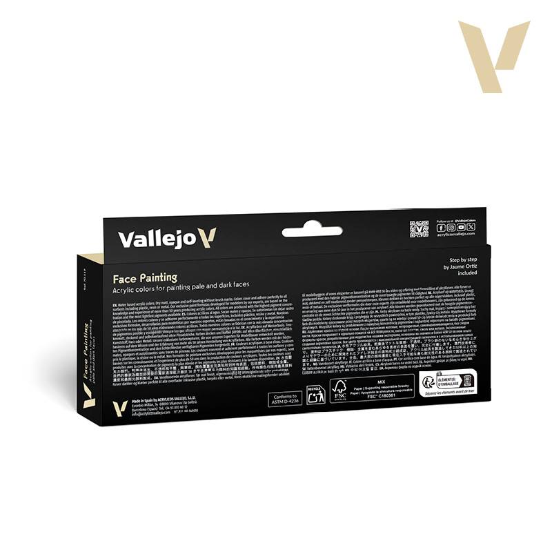 Ce coffret de huit peintures acryliques Vallejo Model Color a été spécialement conçu par l’artiste renommé Jaume Ortiz pour offrir une palette équilibrée couvrant un vaste éventail de carnations, des teints les plus clairs aux nuances plus bronzées ou mates. Pensé pour les figurinistes, peintres de miniatures et amateurs de portraits détaillés, cet ensemble est un outil indispensable pour recréer la richesse des tons de peau, qu’il s’agisse de personnages historiques, de figurines fantastiques ou de bustes réalistes.