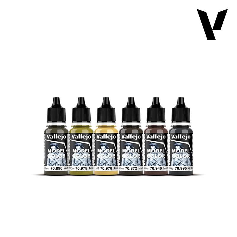 Le coffret comprend 6 teintes Model Color (18 ml chacune), sélectionnées pour couvrir les principaux schémas de camouflage :