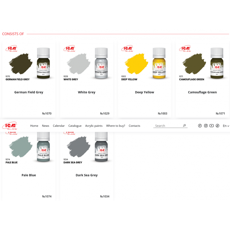 En tant que fabricant ukrainien reconnu pour la qualité de ses maquettes, ICM développe également ses propres gammes de peintures afin de proposer une solution cohérente et fidèle aux standards historiques. Ce set complète parfaitement les avions de la Luftwaffe présents dans leur catalogue