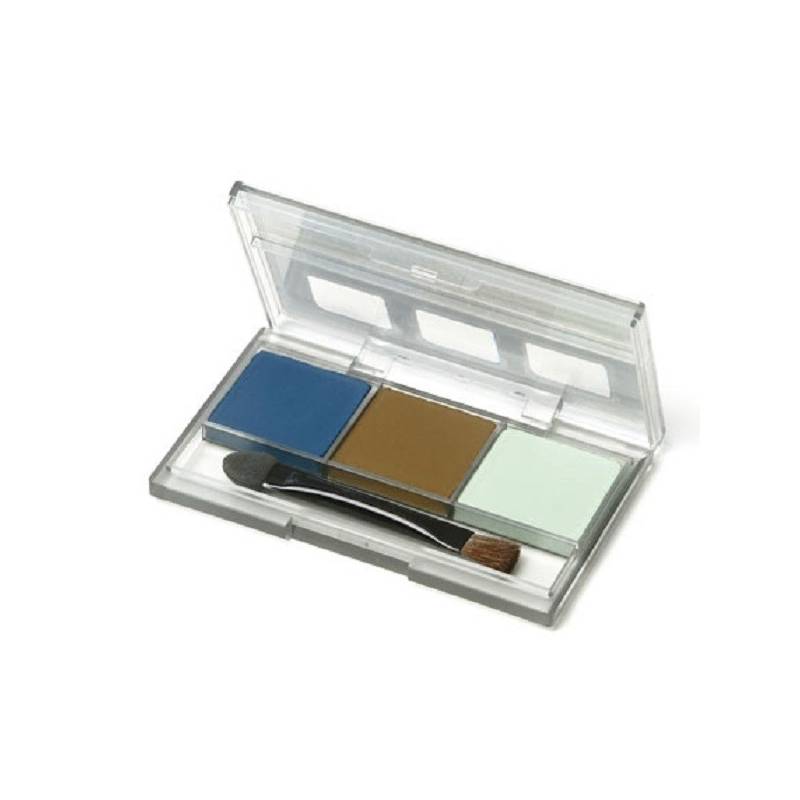La palette est constituée de trois pastels de différentes couleurs et d’un applicateur double (éponge et brosse).